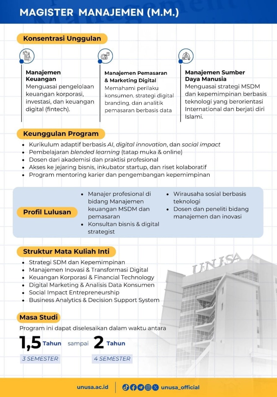 Sesuai dengan Surat Keputusan Lamemba Nomor818/DE/A.5/AR.11/X/2025 Tahun 2025 Program Studi S2 Manajemen mendapatkan akreditasi.
